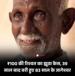 Chatishgarh।। रायपुर। छत्तीसगढ़ की राजधानी रायपुर में परिवहन निगम के ईमानदार कर्मचारी जागेश्वर सिंह को 39 साल बाद आखिरकार न्याय मिल गया। मात्र 100 रुपये की कथित रिश्वत के झूठे मामले में फंसाए गए जागेश्वर सिंह को अदालत ने निर्दोष करार देते हुए बाइज्ज़त बरी कर दिया।